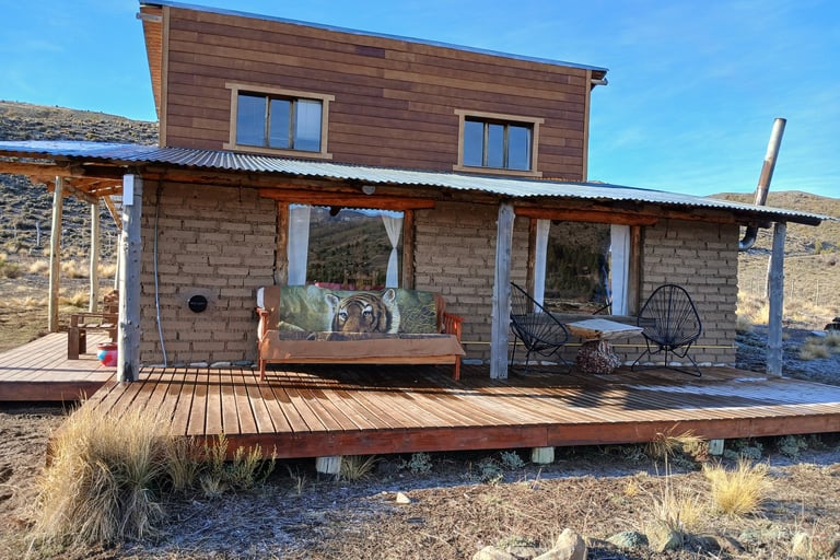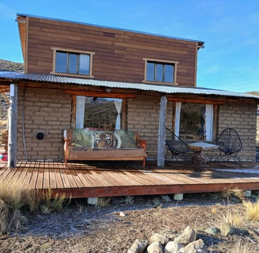 Nuestro hospedaje es una cabaña de adobe y madera con capacidad para 8 personas, construida con materiales sustentables. Un espacio rústico y cómodo, rodeado de naturaleza, pensado para descansar y disfrutar en familia o con amigos.
